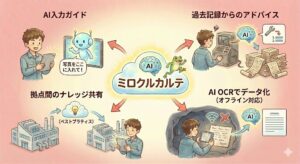 ミロクルカルテが目指すのは、現場作業を直接的に支援する「動く知恵」の提供です。不慣れな現場であっても、AIがまるで熟練の指導者のように寄り添い、確実な一歩をサポートします。