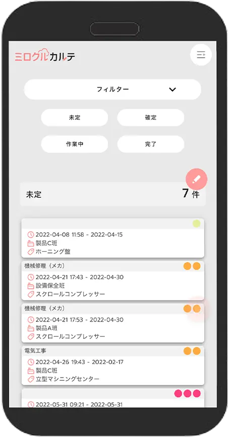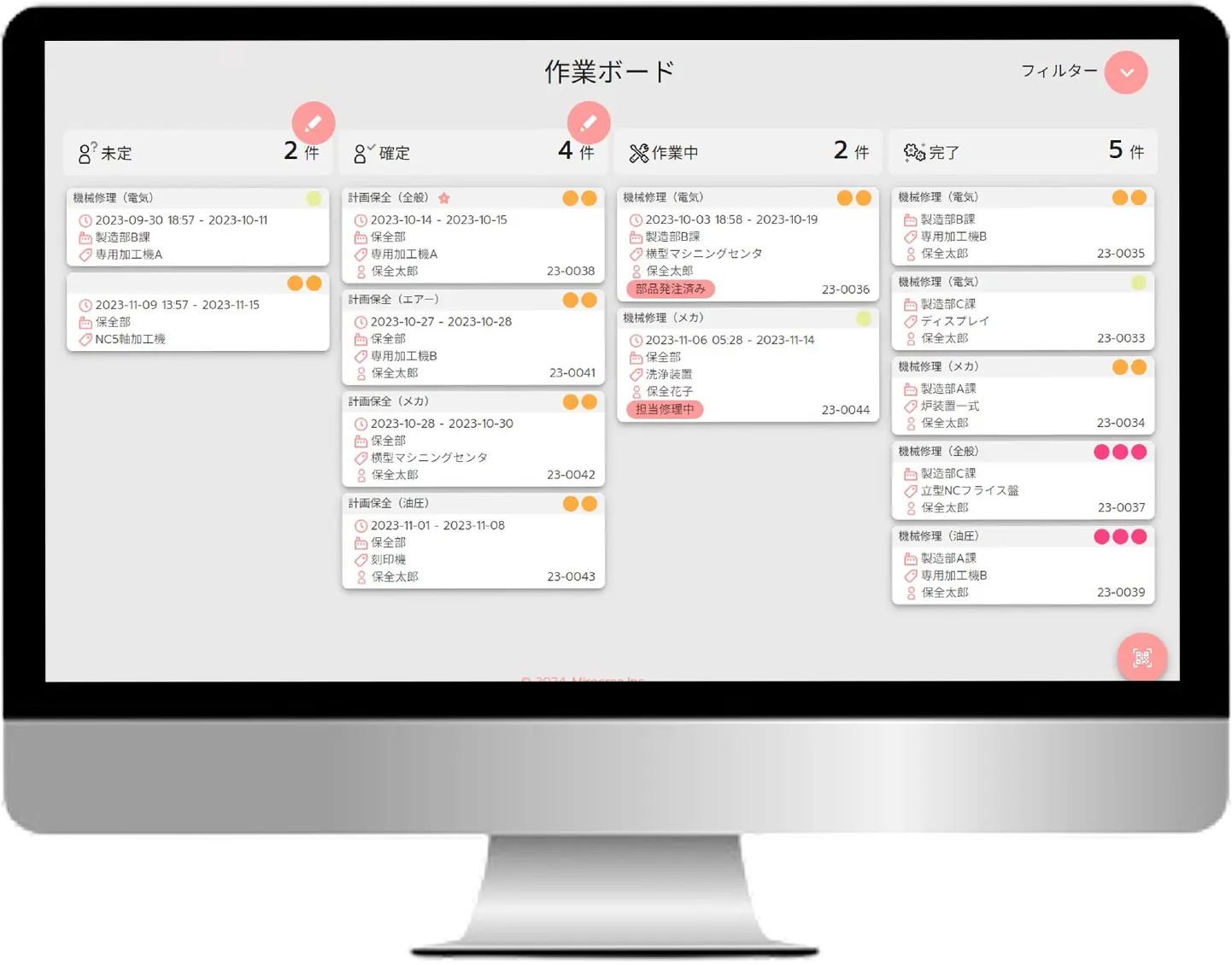 作業ボード上で保全作業の進捗を一目で把握できます。