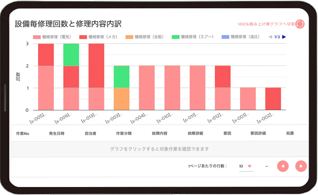 どの設備に負荷が集中しているか、どのタイミングで故障が多いかを把握し、改善策の立案に活かせます。
